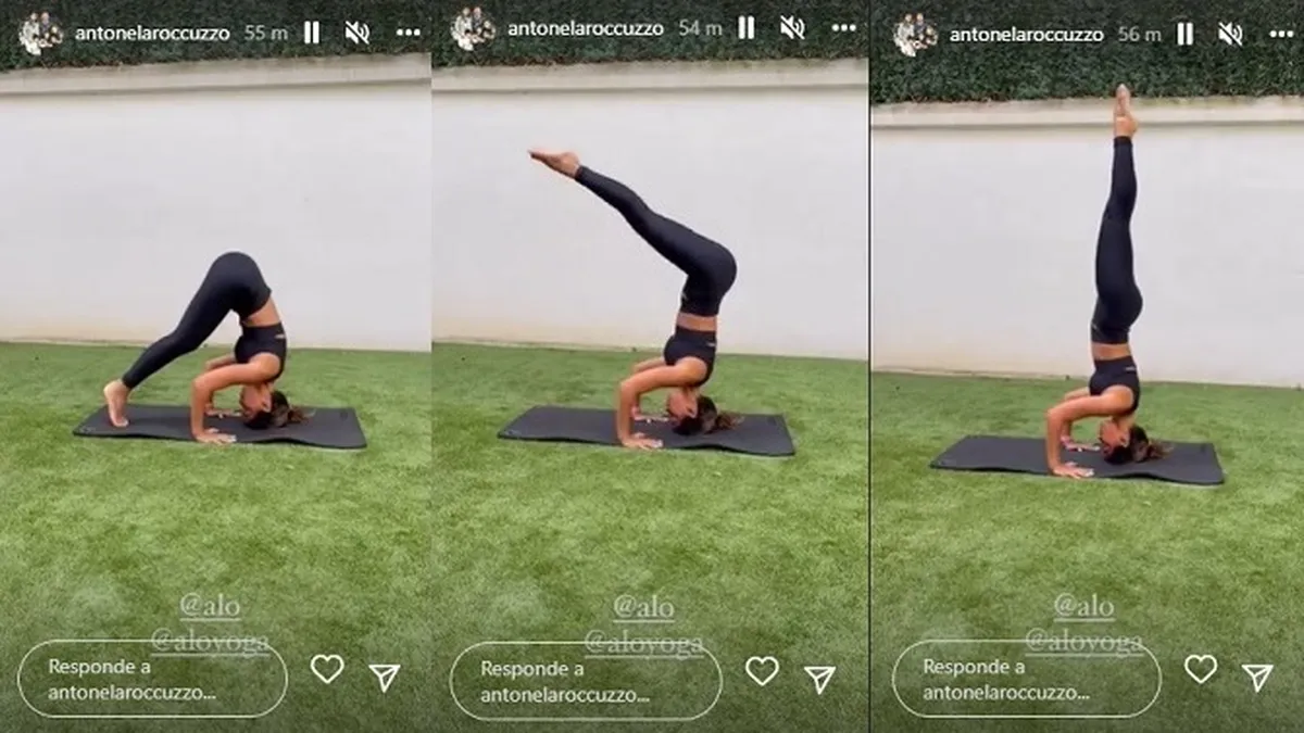 Cultora de la vida sana y amante del entrenamiento físico, Antonela Roccuzzo ahora se mostró desde su cuenta de Instagram practicando una de las posturas presumiblemente más complejas: pararse de cabeza, ya que implica un equilibrio no sólo físico sino que para lograrlo también se requiere de un gran equilibrio mental y espiritual.